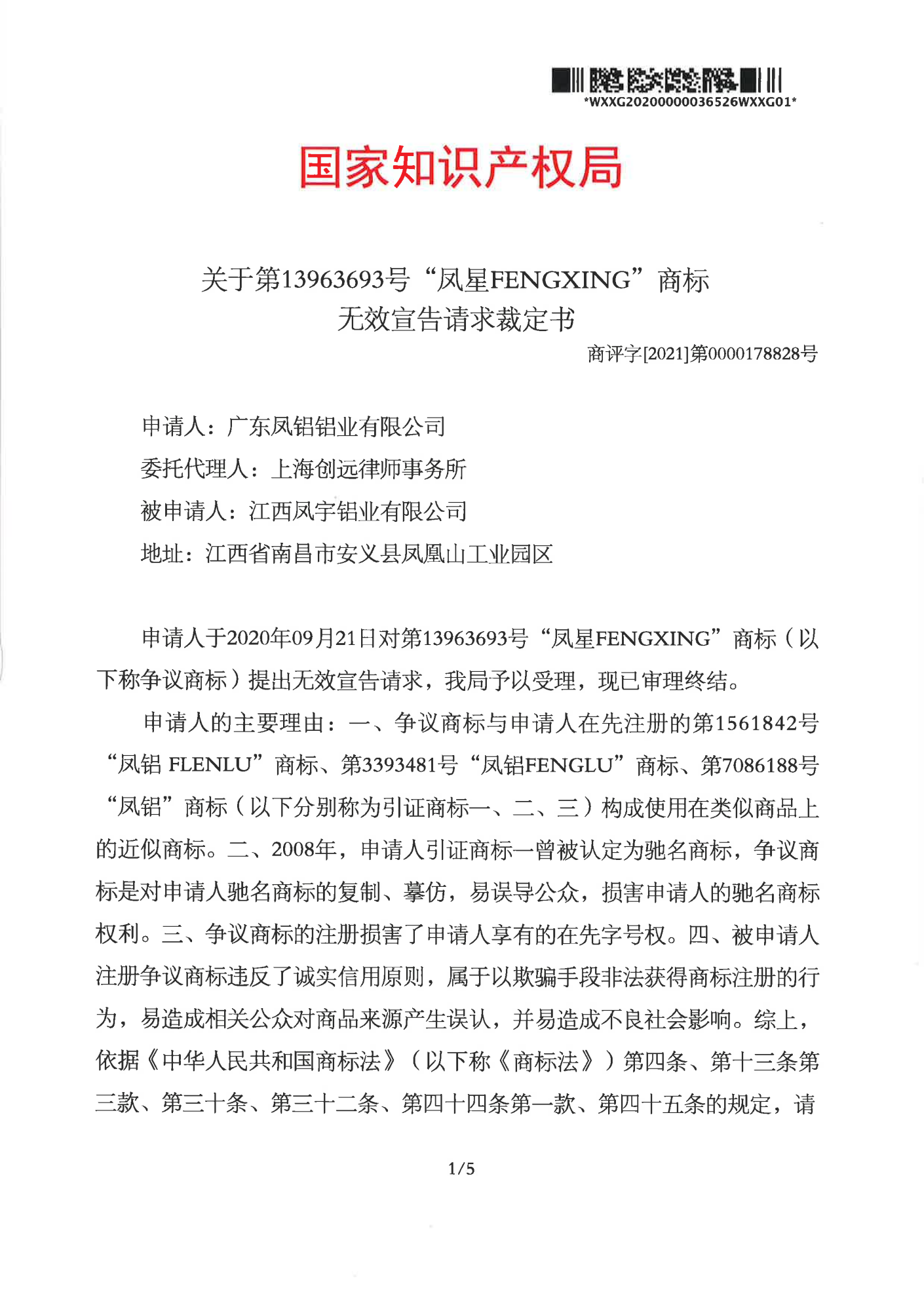 遂宁辉知队 | 国家知识产权局:“凤星”商标无效